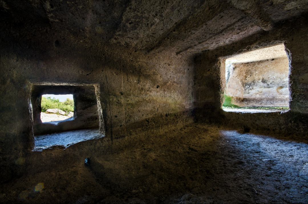 Il complesso archeologico del Nuraghe Appiu sorge sul margine occidentale dell’altopiano di Chentu Mannas, dominante la fascia costiera compresa tra Capo Marargiu e Capo Caccia. Il nuraghe, posto a 497 m s.l.m., è circondato da un vasto villaggio e si trova a circa 350 metri a nord-ovest di una tomba di giganti, mentre a circa 100 metri è presente un nuraghe monotorre, noto come Punta ’e Su Crabile. L’edificio, in gran parte coperto da un imponente crollo, è stato oggetto di un importante intervento di restauro nel 2012, finalizzato al consolidamento e alla messa in luce della struttura. Il restauro ha rivelato un nuraghe quadrilobato con cortine rettilinee e torri laterali collegate da conci sagomati a “L”. Un accesso monumentale conduce a un cortile coperto, elemento raro nel panorama nuragico, dal quale si aprono sei accessi: uno centrale verso la torre principale, quattro verso le torri laterali e altri che immettono in lunghi corridoi di collegamento con ulteriori torri. La torre centrale conserva le tholoi delle prime due camere, dotate di nicchie, di una scala e di un ampio finestrone, probabilmente destinato a illuminare un soppalco ligneo. Nel villaggio circostante è emersa una porzione del settore orientale, caratterizzata da isolati disposti attorno a un cortile centrale; gli ambienti-capanna presentavano funzioni specifiche, con focolari e nicchie ricavate nello spessore murario.